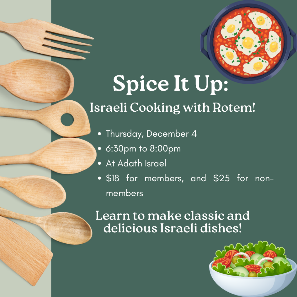 Welcome to Sisterhood Visit our membership page Spice it Up – Israeli Cooking with Rotem!Upcoming Events