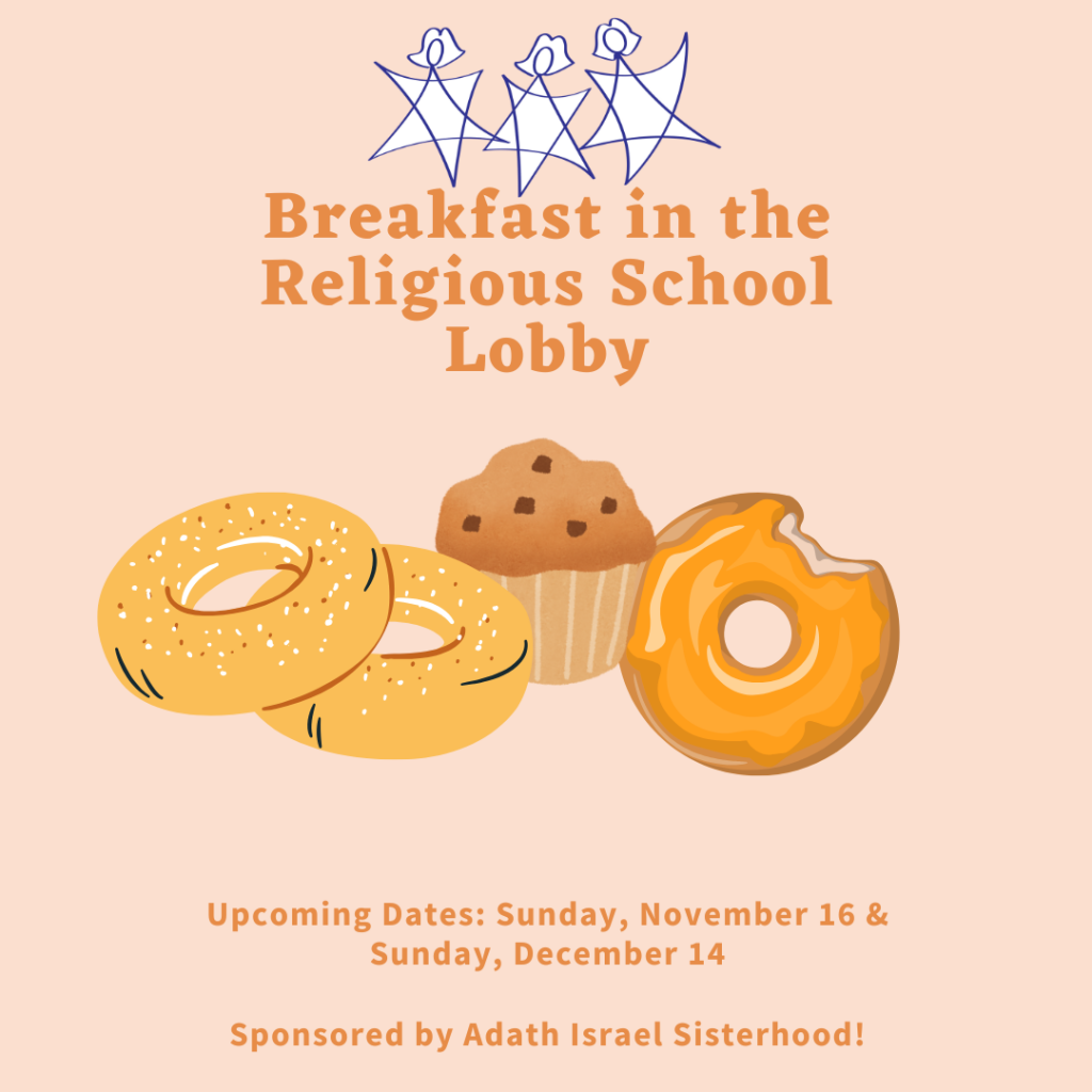 Sisterhood is sponsoring breakfast in the Religious School lobby on Sunday, March 1 prior to Purim Palooza